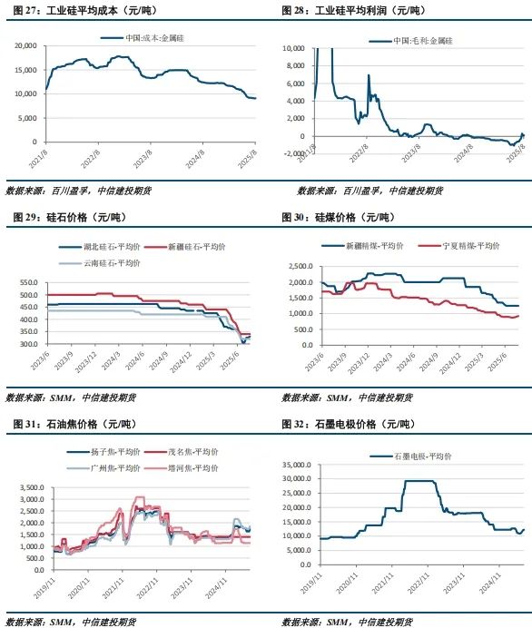 工业硅生产成本变化不大,各类原料波动趋于平稳,西南丰水期电价也已运行至年内低点。利润方面,由于工业硅现货价格近期逐步回调,工业硅生产利润再度回落。